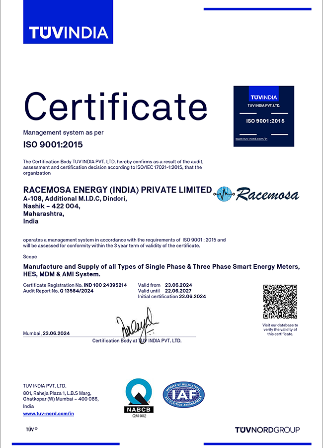 We as Racemosa a professional energy meter manufacturer have confidence in supplying customers with technically advanced and most stable energy meters. The company believe in principle of Best Technology, Best Quality & Best Service. Our success is attributed to continuous development and advanced testing techniques applied to our meter products. We seek new and better ways to meet our customer’s changing and diverse requirements with a day-to-day commitment to produce superior and better products and introduce them to our customers.