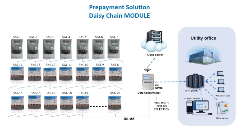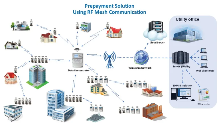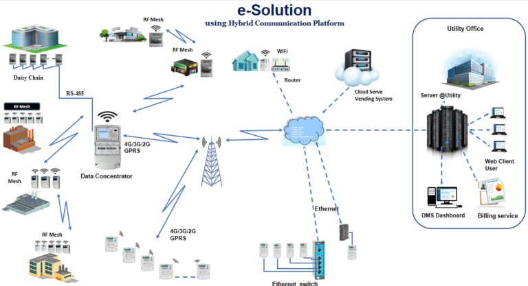 Racemosa e-Solution using Hybrid communications is an end-to-end flexible, scalable, configurable and easy to use comprehensive AMI Solution with pre-paid/post-paid capabilities for utility companies, with mix of pre-paid and post-paid consumers. It is an ideal solution for major deployments with various limitations particularly from communication coverage point of views. The payment mode for consumers that are provided with Prepaid Smart Meters can be converted to Post-Paid or vice-versa by the utility issuing a command from the central office.